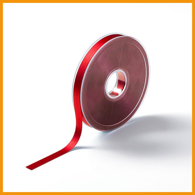 Molemminpuolin kauniin kiiltävä satiininauha vaatetukseen, askarteluun, koristeluun, lettinauhaksi. 100% polyestersatiini. Leveys 10 mm, rullassa 25 m. Punainen.Jos haluat tilata täysin pakkauksin, niin RLL on 1 kappaletta.