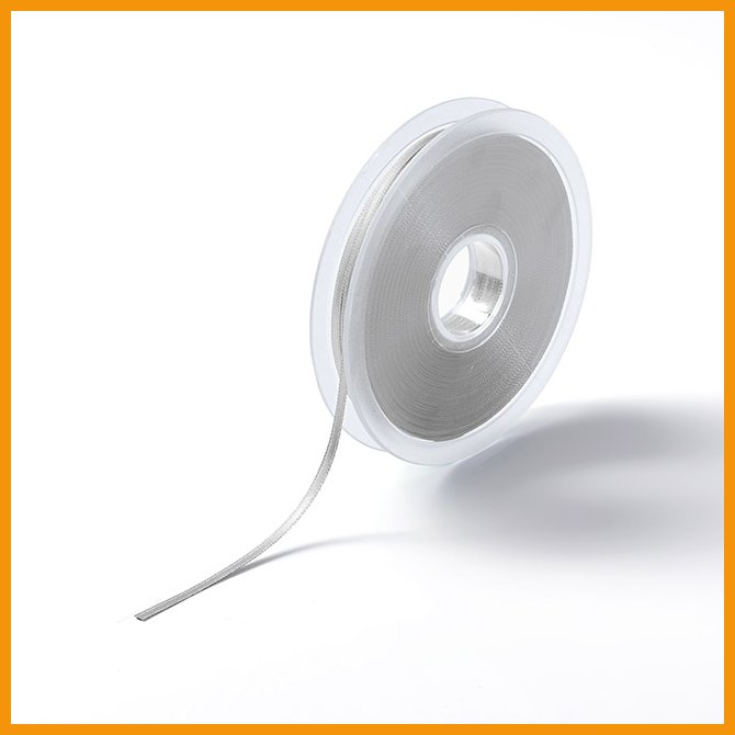 Molemmin puolin kauniin kiiltävä satiininauha vaatetukseen, askarteluun, koristeluun, lettinauhaksi. 100% polyesterisatiini. Leveys 3 mm, rullassa 50 m. Hopea.Jos haluat tilata täysin pakkauksin, niin RLL on 1 kappaletta.