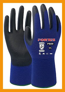 Fortes PB09 on ohut, vuoriton ja joustava käsine, jonka tiukka istuvuus ja PU-pinnoite takaavat erinomaisen otepidon ja kulutuskestävyyden. Saumaton neulos tuntuu mukavalta, hengittää hyvin ja toimii myös kosketusnäytöillä. Käsineet soveltuvat hyvin esimerkiksi asennus-, varasto- ja tarkkuustöihin.Koko: 7