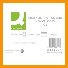 Q-CONNECTin uusiopaperisessa, tasaläppäisessä tarrakuoressa on harmaa sisuspainatus ja irrotettava suojateippi helppoon sulkemiseen. Lyhyeltä sivultaan aukeava kuori on valmistettu FSC-sertifioidusta kierrätysmateriaalista.Koko: C6 (114 x 162 mm)