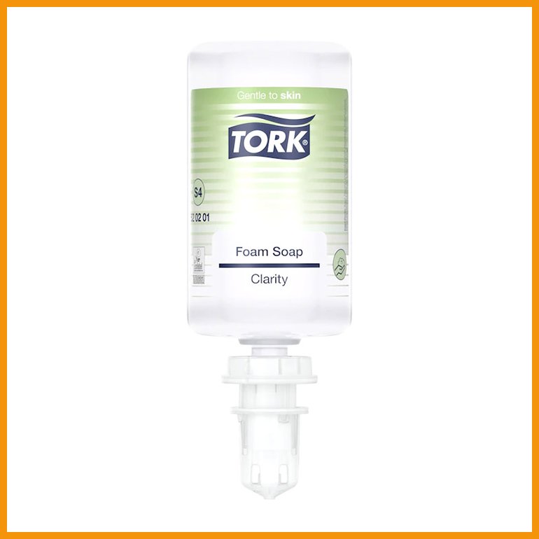 Tork Foam Soap Clarity on läpinäkyvä vaahtosaippua, jonka valmistuksessa on haluttu kuormittaa ympäristöä tavallista vähemmän. Tuotteen pesevät ainesosat ovat peräisin uusiutuvista lähteistä ja kasvipohjaisia.Dermatologisesti testatulla ja 99-prosenttisesti luonnollisista ainesosista valmistetulla tuotteella on EU Ecolabel -ympäristösertifikaatti.
