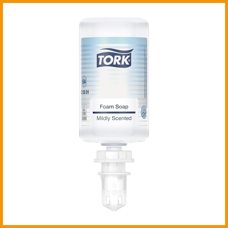 Tork Foam Soap Mildly Scented on raikkaasti tuoksuva vaahtosaippua, joka hoitaa ihoa päivittäisen käsienpesun yhteydessä. Raikkaasti tuoksuvan saippuan kosteuttavat ja täydentävät ainesosat tekevät käsien pesusta hellävaraista.Dermatologisesti testatulla ja 96-prosenttisesti luonnollisista ainesosista valmistetulla tuotteella on ihoystävällinen pH ja EU Ecolabel -ympäristösertifikaatti.