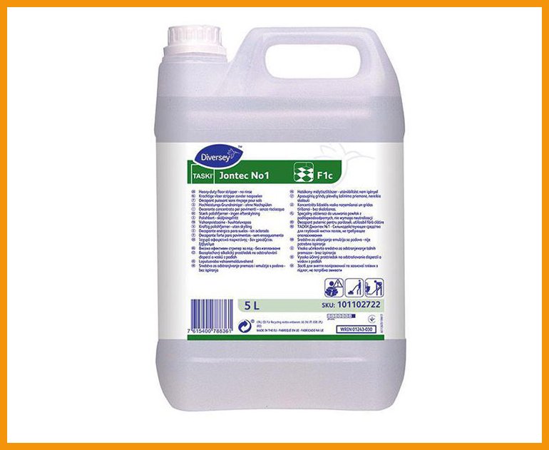 Diverseyn Taski Jontec No1 on tehokkaasti ja nopeasti vaikuttava huuhteluvapaa vahanpoistoaine emäksisiä aineita kestäville lattioille. Miellyttävän tuoksun jälkeensä jättävä aine tehoaa jopa 2-5 minuutissa eikä huuhtelua tarvita, vaan kostealla pyyhkiminen riittää.Pakkauskoko: 5 litraa.
