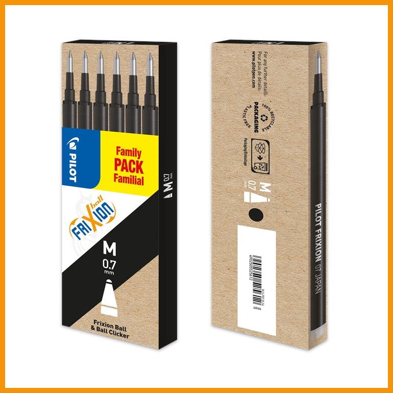 Vaihtosäiliö antaa uuden elämän Pilot FriXion -kuulakärkikynällesi. Tässä perhepakkaus mustetta, vieläpä täysin muovivapaasti.