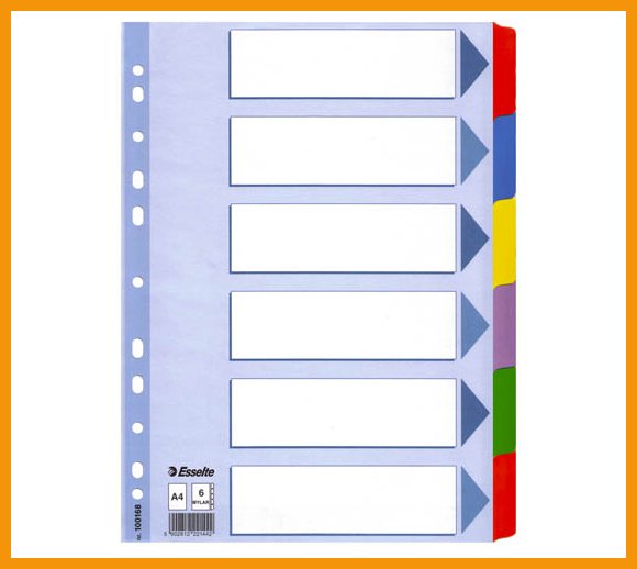 Välilehti Esselte Mylar A4 kartonki blanko 6-osainen hinta 2,37€