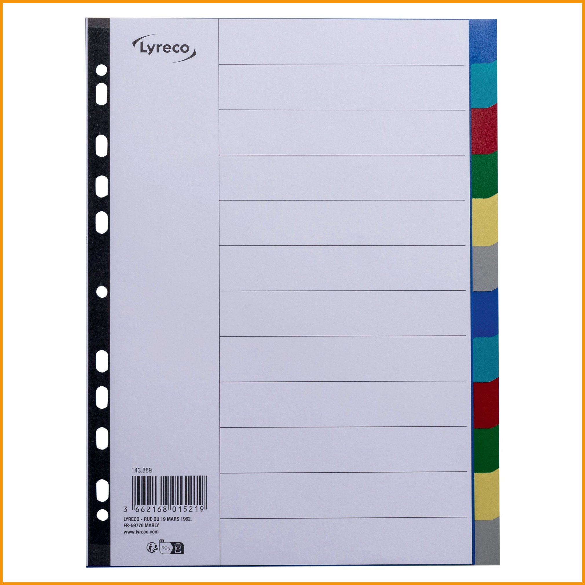 Helpota työskentelyä lyreco-välilehtien avulla. pp-muovinen välilehti hylkii tahroja ja roiskeita. ekstraleveässä lehdessä on vahvistettu kansilehti ja värilliset kielekkeet ilman painatusta. Välilehden minimitilaus 1. Tukkupakkauksessa 20.Välilehti Lyreco 12-osainen a4 pp värilajitelma on korkealaatuinen toimistotuote, jonka toimituksen kesto on verkkokaupasta tilattuna 1-2 päivää. Tiedäthän, että Toimitus on ilmainen kaikilla verkkokaupan ostoksilla, joiden hinta on yli 140 €. Meiltä voit tilata laskulla ja ilman rekisteröitymistä.