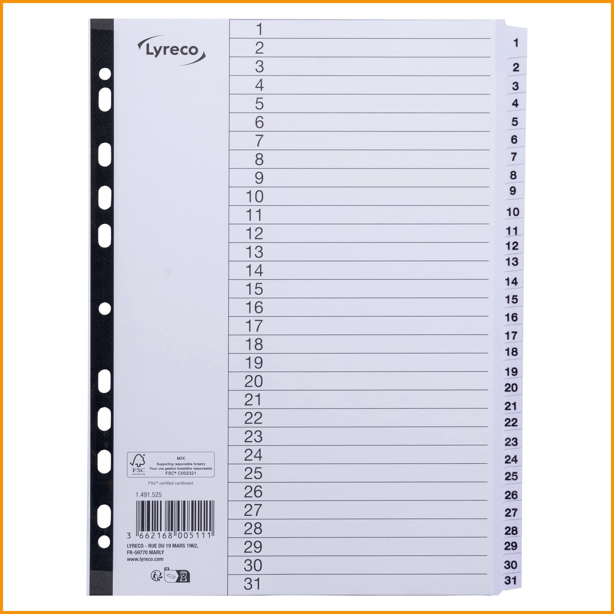 Välilehti Lyreco mylar 1-31 a4 harmaa tuotetiedot