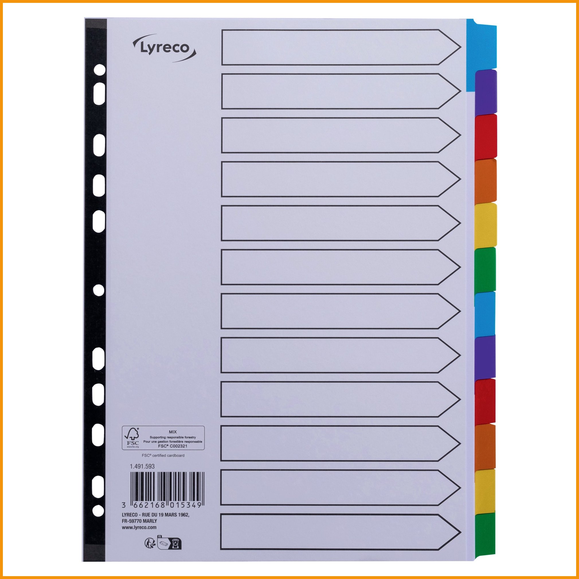 Välilehti Lyreco 12-osainen a4 pp värilajitelma