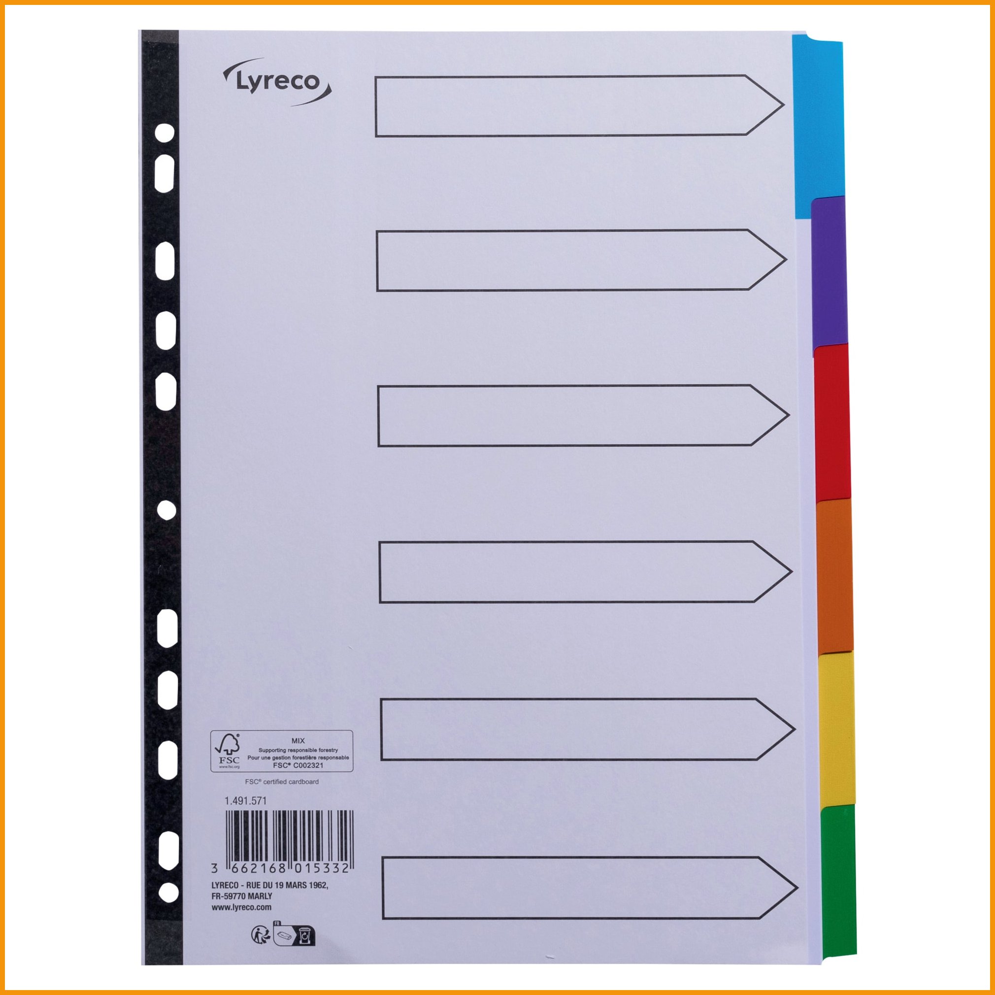 Lyreco mylar -hakemistojen avulla säästät aikaa tiedon etsimisessä ja selkeytät arkistointia. kartonkisissa välilehdissä on moniväriset mylar-muovikielekkeet ja vahvistetut mapitusreiät. vahvuus 160 g. Välilehden minimitilaus 1. Tukkupakkauksessa 100.Välilehti Lyreco mylar 6-osainen a4 muovikieleke on hyvä toimistotuote, jonka verkkokaupan tilauksen toimitus kestää 1-2 päivää. Huomaa, että ilmainen toimitus on kaikilla yli 140 € hintaisilla tilauksilla! Meiltä voit tilata laskulla ja ilman rekisteröitymistä.