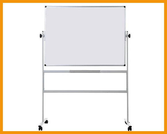 Bi-Officen kaksipuolisessa valkotaulussa on molemmilla puolilla magneettinen emaloitu teräspinta. Valkotaulukynän jälki irtoaa helposti taulupyyhkimellä tai kuivalla liinalla. Vaaka-akselinsa ympäri kääntyvässä taulussa on alumiinikehykset, muoviset kulmapalat, neljä lukittavaa pyörää ja kynäkouru. Pakkauksessa tulevat mukana kiinnitystarvikkeet.Mitat: 120 x 90 cm