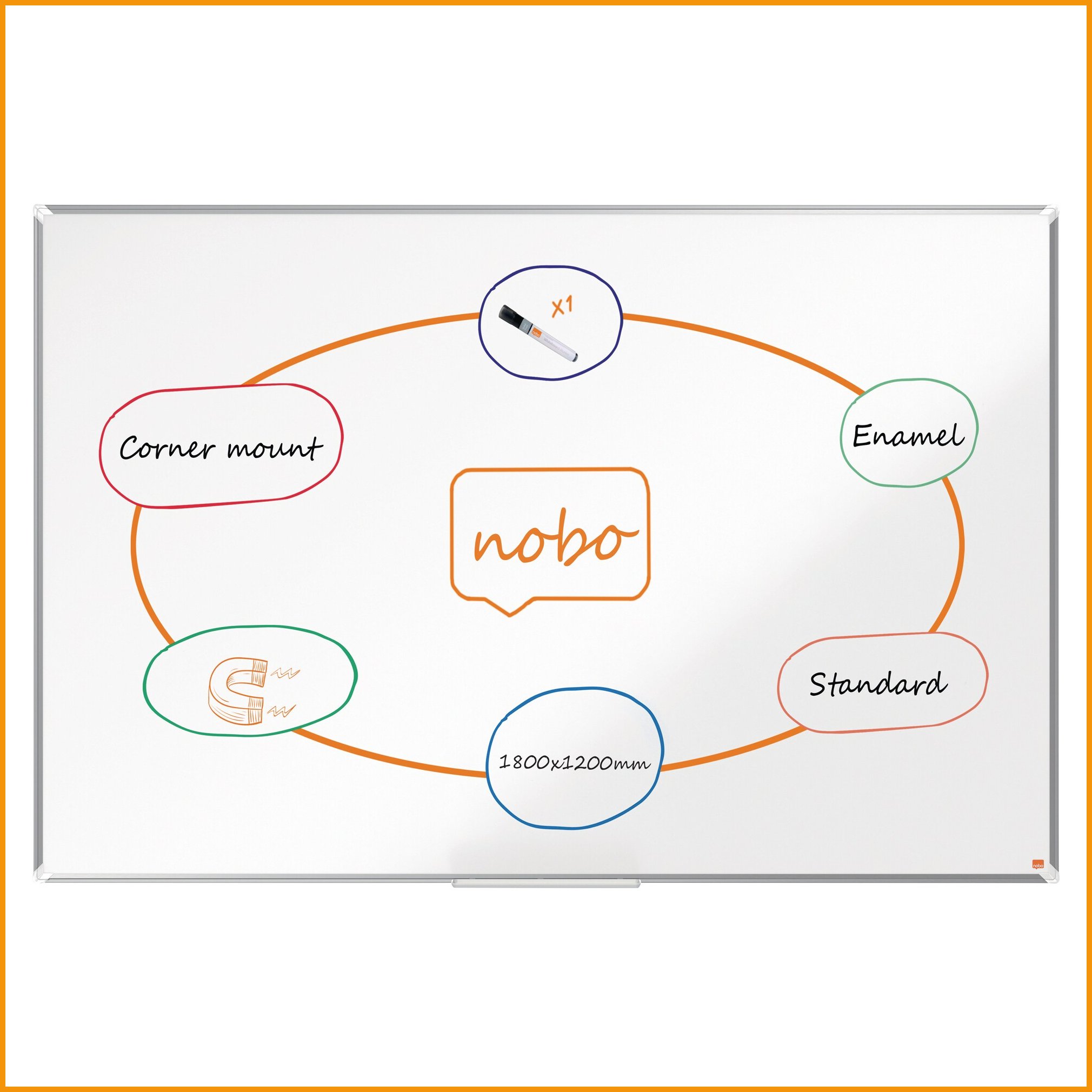 Magneettinen emalipinta tarjoaa erinomaisen pyyhittävyyden. taulu sopoo erinoimaisesti säännölliseen käyttöön. nykyaikainen ja tyylikäs alumiinikehys koko 1800 x 1200 mm kiinnitetään perinteisellä seinäkiinnityksellä taulun kulmista. laaja kynäteline kynien ja pyyhkimien säilytykseen. mukana nobon valkotaulukynä emalipinnalla 25 vuoden takuu myyntierä 1.Valkotaulu Nobo premium plus emali 1800 x 1200mm on upea toimistotuote, jota toimitetaan kun sitä saapuu varastoon (1-2 viikkoa). Tiedäthän, että Toimitus on ilmainen kaikilla verkkokaupan ostoksilla, joiden hinta on yli 140 €. Meiltä voit tilata laskulla ja ilman rekisteröitymistä.