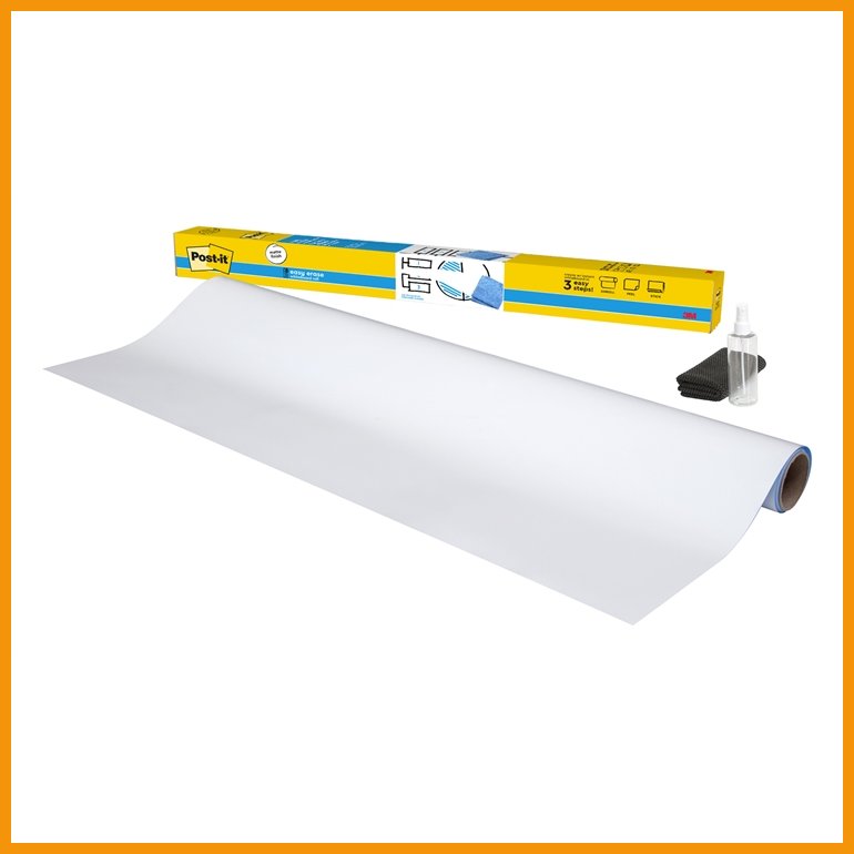 Post-it Easy Erase -valkotaulukalvo tarttuu tiukasti tasaisille pinnoille, kuten maalattuun kipsilevyyn, käsitellyille puupinnoille, lasiin tai maalattuihin teräspintoihin ja muuntaa pinnan hetkessä valkotauluksi.Voit kirjoittaa kalvolle sekä pysyvillä merkintäkynillä että valkotaulutusseilla. Valkotaulutussi irtoaa kalvosta kuivalla pyyhkeellä ja pysyväkin muste vedellä pyyhkimällä - ylimääräisiä puhdistuskemikaaleja ei tarvita.