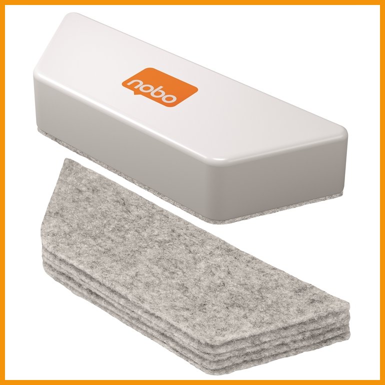 Nobon magneettinen valkotaulunpyyhin poistaa tehokkaasti kuivapyyhittävän valkotaulukynän jäljen. Pyyhkimeen on saatavilla sen käyttöikää pidentäviä vaihtopintoja. Löydät ne verkkokaupastamme tuotenumerolla 552153.Mitat: 89 x 40 x 228 mm