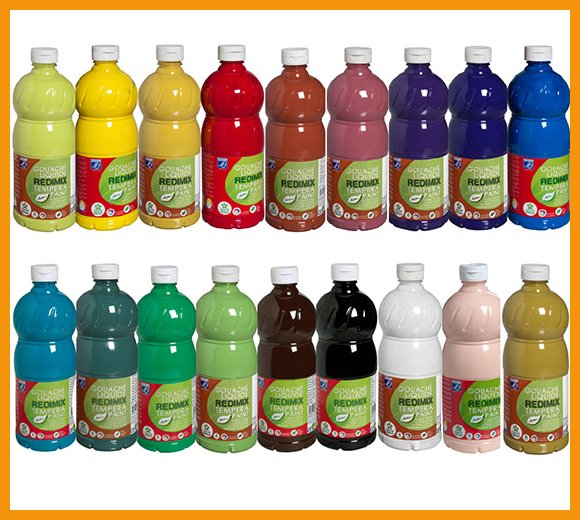 Erityisesti lasten käyttöön suunnitellut Lefranc & Bourgeois Redimix -valmisvärit ovat vesiohenteisia, pigmenttipohjaisia ja kuivuttuaan mattapintaisia. Peittävät ja kirkkaat värit voidaan sekoittaa keskenään, ja myrkytön väriaine irtoaa vaatteista konepesussa.Tuote täyttää GreenDeal -kriteerit.