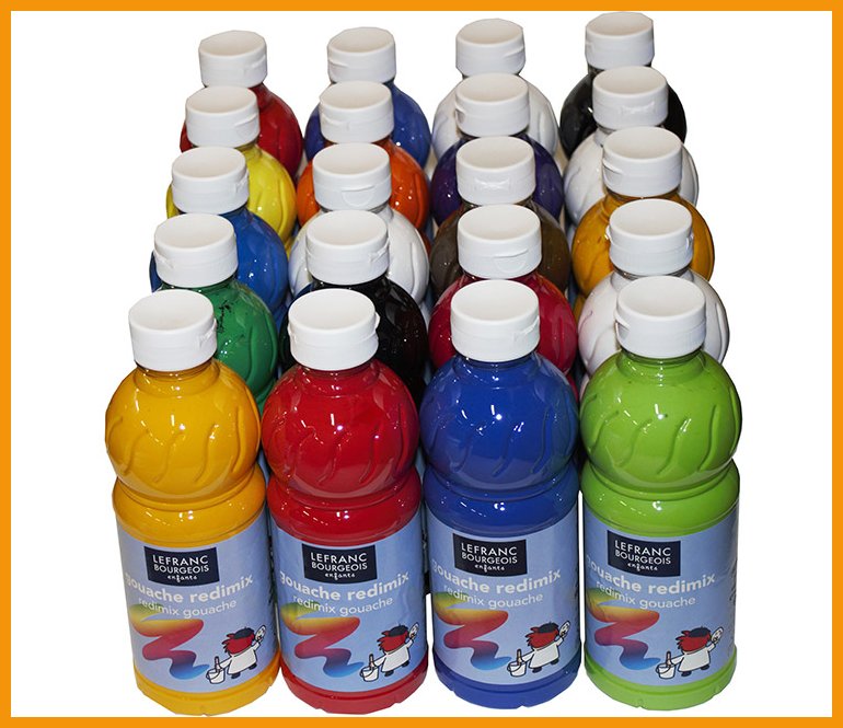 Erityisesti lasten käyttöön suunnitellut Lefranc & Bourgeois Redimix -valmisvärit ovat vesiohenteisia, pigmenttipohjaisia ja kuivuttuaan mattapintaisia. Peittävät ja kirkkaat värit voidaan sekoittaa keskenään, ja myrkytön väriaine irtoaa vaatteista konepesussa.Tuote täyttää GreenDeal -kriteerit.