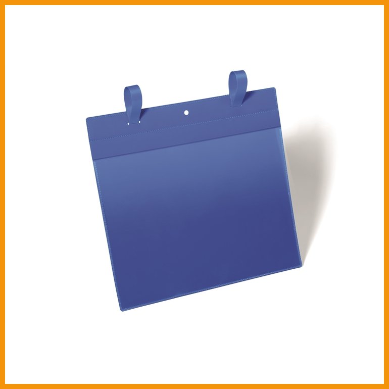 Durablen vaakamallinen varastotasku kiinnitetään nuolimaisista lenkeistä kiinnityslovistaan. Tasku voidaan laittaa roikkumaan esimerkiksi tangosta, putkesta tai narusta. Taskun suulla oleva läppä suojaa asiakirjoja pölyltä ja kosteudelta.Löydät pystymallisen taskun verkkokaupastamme koodilla 204400.