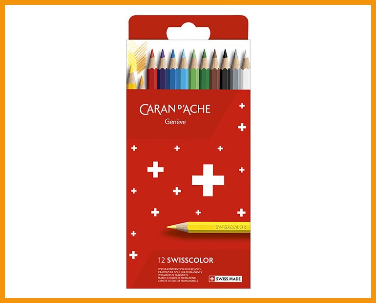 Caran d'Ache Swisscolor on erityisesti koulukäyttöön suunniteltu korkealaatuinen ja vedenkestävä värikynä, jonka värit levittyvät tasaisesti ja peittävät erinomaisesti. Lyijy on pehmeää ja kestää valoa.Kynät on valmistettu FSC-sertifioidusta materiaalista.