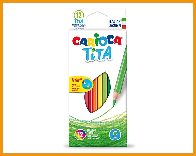 Puuvapaan CARIOCA Tita -värikynän kuusikulmainen runko on valmistettu synteettisestä hartsimateriaalista, joka kestää erinomaisesti putoamista ja pureskelua. Pehmeällä lyijyllä saa aikaan voimakkaat värit, ja kynä on helppo teroittaa.Lyijyn paksuus: 3 mm