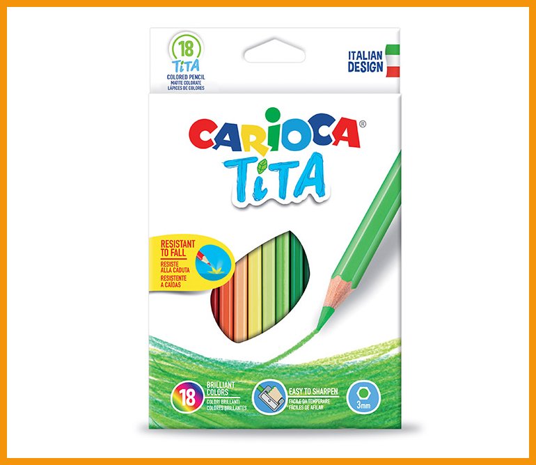 Puuvapaan CARIOCA Tita -värikynän kuusikulmainen runko on valmistettu synteettisestä hartsimateriaalista, joka kestää erinomaisesti putoamista ja pureskelua. Pehmeällä lyijyllä saa aikaan voimakkaat värit, ja kynä on helppo teroittaa.Lyijyn paksuus: 3 mm