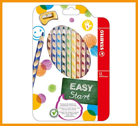 STABILO EASYcolors on vasenkätisille suunniteltu ergonominen värikynä, jonka rungossa on sormien lipsumista ehkäisevät viisteet.Kaikki STABILOn puiset kynät valmistetaan FSC- tai PEFC-sertifioidusta materiaalista.