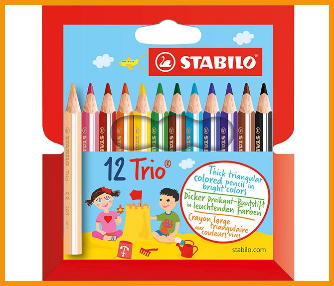 Stabilo Trio on lyhyt, paksuvartinen ja kolmikulmainen puuvärikynä pahvirasiassa. Löydät sopivan teroittimen verkkokaupastamme koodilla 64988.Kaikki STABILOn puiset kynät valmistetaan FSC- tai PEFC-sertifioidusta materiaalista.