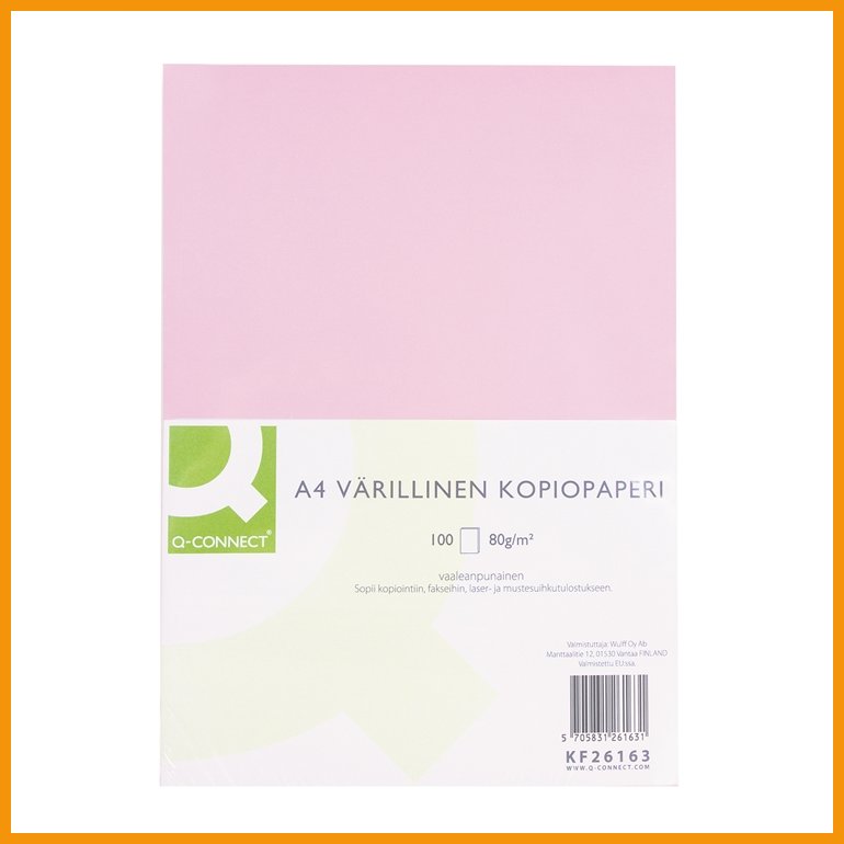 Q-CONNECTin värillinen kopiopaperi soveltuu kaikenlaiseen kopiointiin, laser- ja mustesuihkutulostukseen. Massavärjätty ja kloorivapaa paperi on arkistointikelpoinen standardin ISO 9706 mukaisesti.Paperi on valmistettu FSC-sertifioidusta kuidusta.