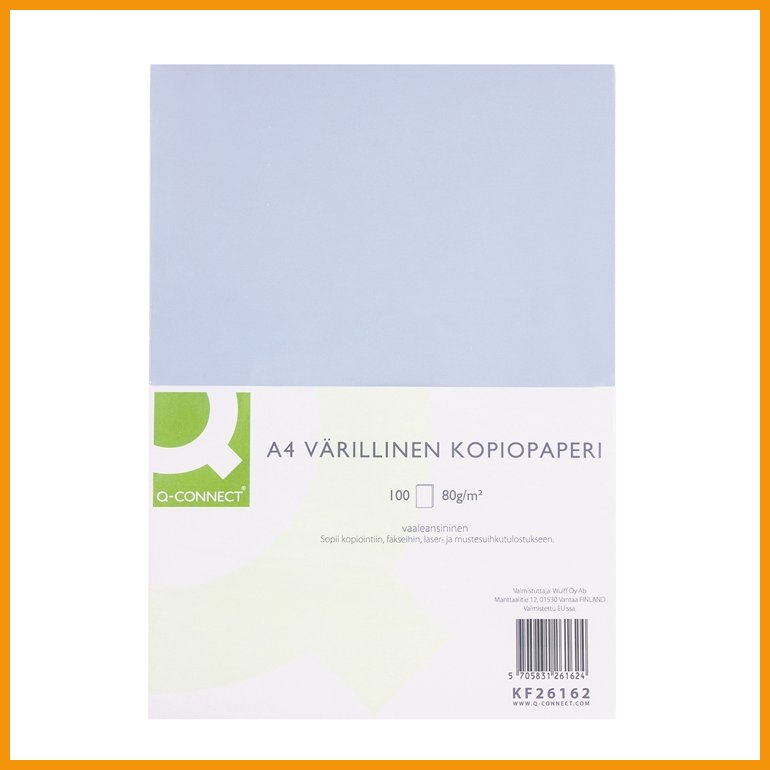 Q-CONNECTin värillinen kopiopaperi soveltuu kaikenlaiseen kopiointiin, laser- ja mustesuihkutulostukseen. Massavärjätty ja kloorivapaa paperi on arkistointikelpoinen standardin ISO 9706 mukaisesti.Paperi on valmistettu FSC-sertifioidusta kuidusta.