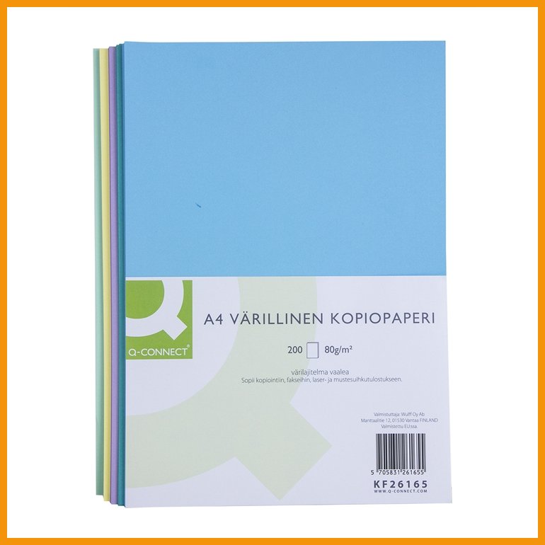 Q-CONNECTin värillinen kopiopaperi soveltuu kaikenlaiseen kopiointiin, laser- ja mustesuihkutulostukseen. Massavärjätty ja kloorivapaa paperi on arkistointikelpoinen standardin ISO 9706 mukaisesti.Paperi on valmistettu FSC-sertifioidusta kuidusta.
