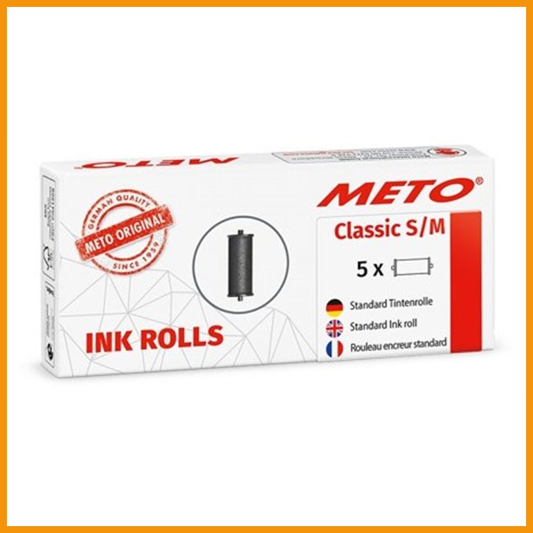 METOn alkuperäiset musterullat käsikäyttöisiin METO Classic S/M -hinnoittelijoihin. Musteen koostumus on sovitettu huolellisesti sellaiseksi, ettei mustetta kerry liikaa.