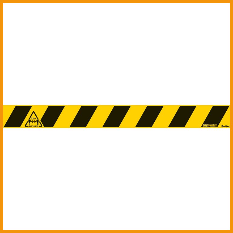 Lattiateippi turvavälien merkitsemiseen. Kelta-musta raidoitus, jossa lisäksi kuvakkeet jotka ohjeistavat pitämään turvaväliä 2m. Sopii kaikille pinnoille, myös betonille ja matoille. 800x80mm.Varoitusteippi Turvaväli 2m 800x80mm on hyvälaatuinen huomioteippi, jonka toimituksen kesto on verkkokaupasta tilattuna 1-2 päivää. Muistathan, että hinnaltaan yli 140 € verkkokauppatilaus toimitetaan aina ilmaiseksi! Meiltä voit tilata laskulla ja ilman rekisteröitymistä.