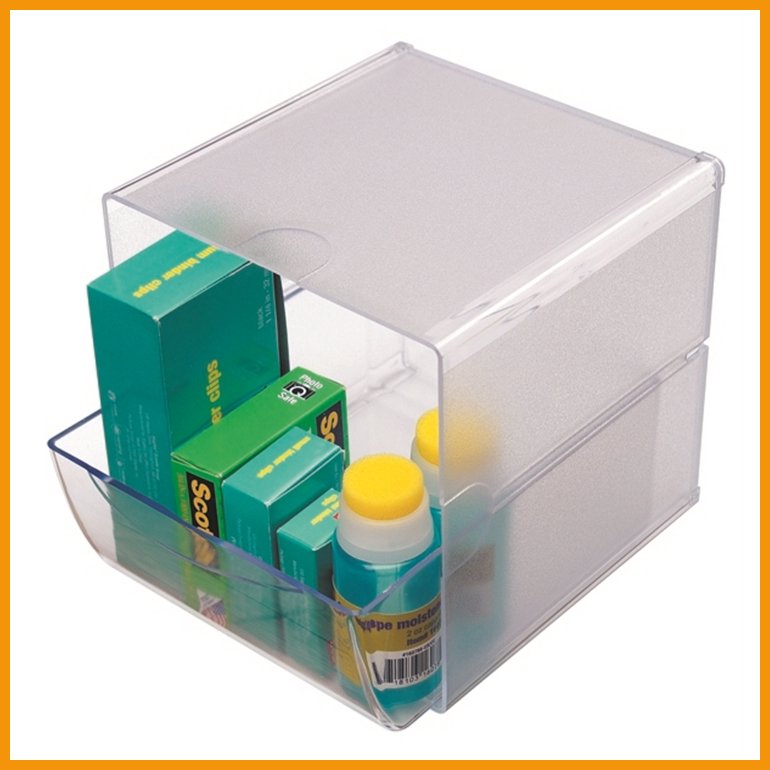 Deflecton vetolaatikolla varustettu säilytyskuutio auttaa pitämään työpöydät ja kaapit järjestyksessä. Sarjaan kuuluu 7 modulaarista säilytyskuutiota, jotka voidaan kiinnittää yhteen mukana tulevilla metalliliittimillä. Kuutioiden hyllyt ja jakajat ovat poistettavissa.Mitat: 152 x 152 x 184 mm