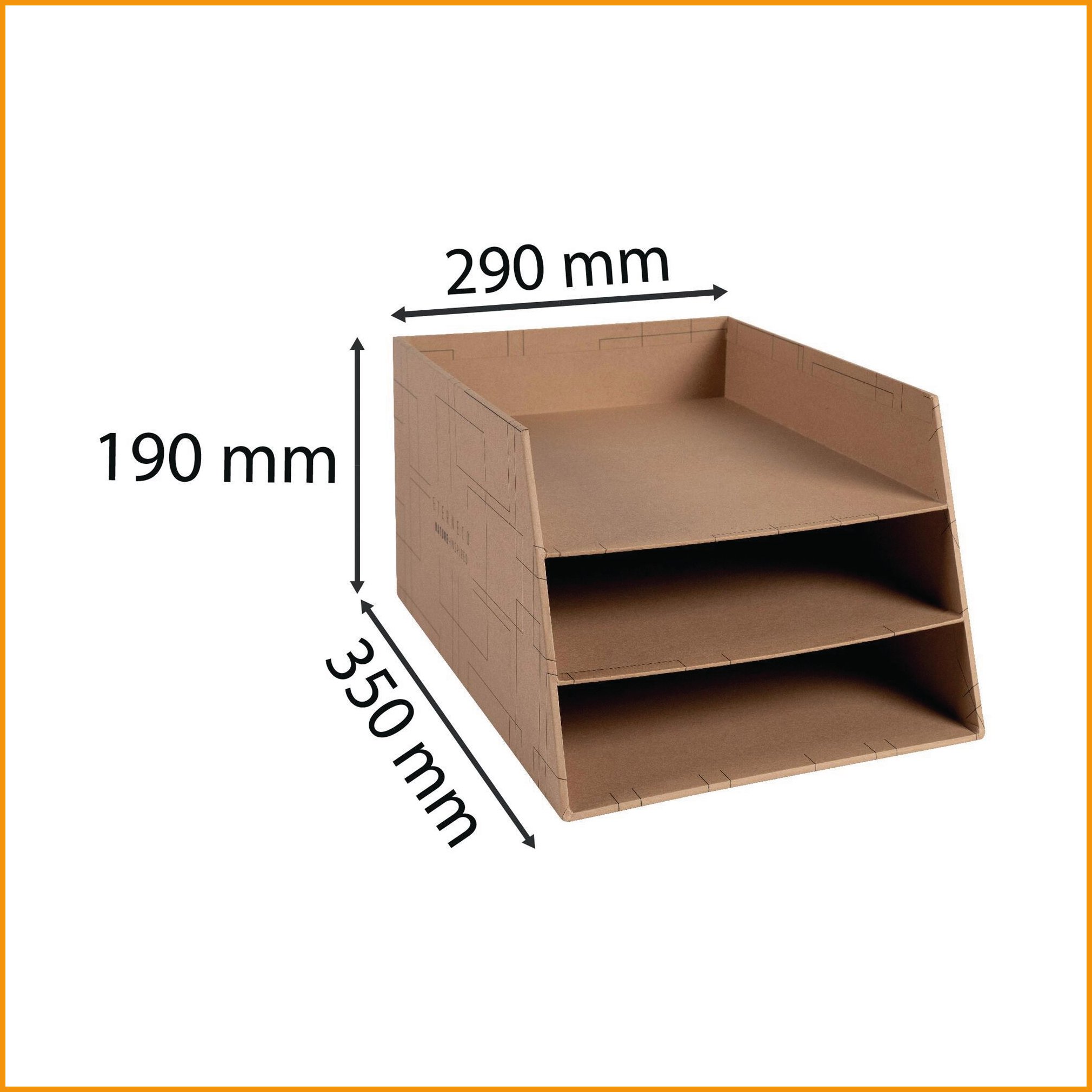 Valmistettu kierrätetystä kartongista ja pinta päällystetty kasvisöljyllä, jonka ansiosta pinnasta tulee vedenkestävä, 100 % kierrätettävissä pefc-sertifioitu ruskeassa kartonkipinnassa geometrinen kuvio 3-osaisen lomakelaatikoston yhteen osioon mahtuu 500 a4 arkkia mitat: 29 x 35 x 19 cm ? Vetolaatikoston minimitilaus 1. Tukkupakkauksessa 4.Vetolaatikosto 3-osainen Eterneco kartonki ruskea on korkealaatuinen toimistotuote, jonka toimituksen kesto on verkkokaupasta tilattuna 1-2 päivää. Huomaa, että hinnaltaan yli 140 € verkkokauppatilaus toimitetaan aina ilmaiseksi! Meiltä voit tilata laskulla ja ilman rekisteröitymistä. Poistotuote tuotetta saatavilla rajoitetusti, niin kauan kuin varastoa riittää. Varastosaldo 3 kpl. Päivitetty: 13.02.2026.