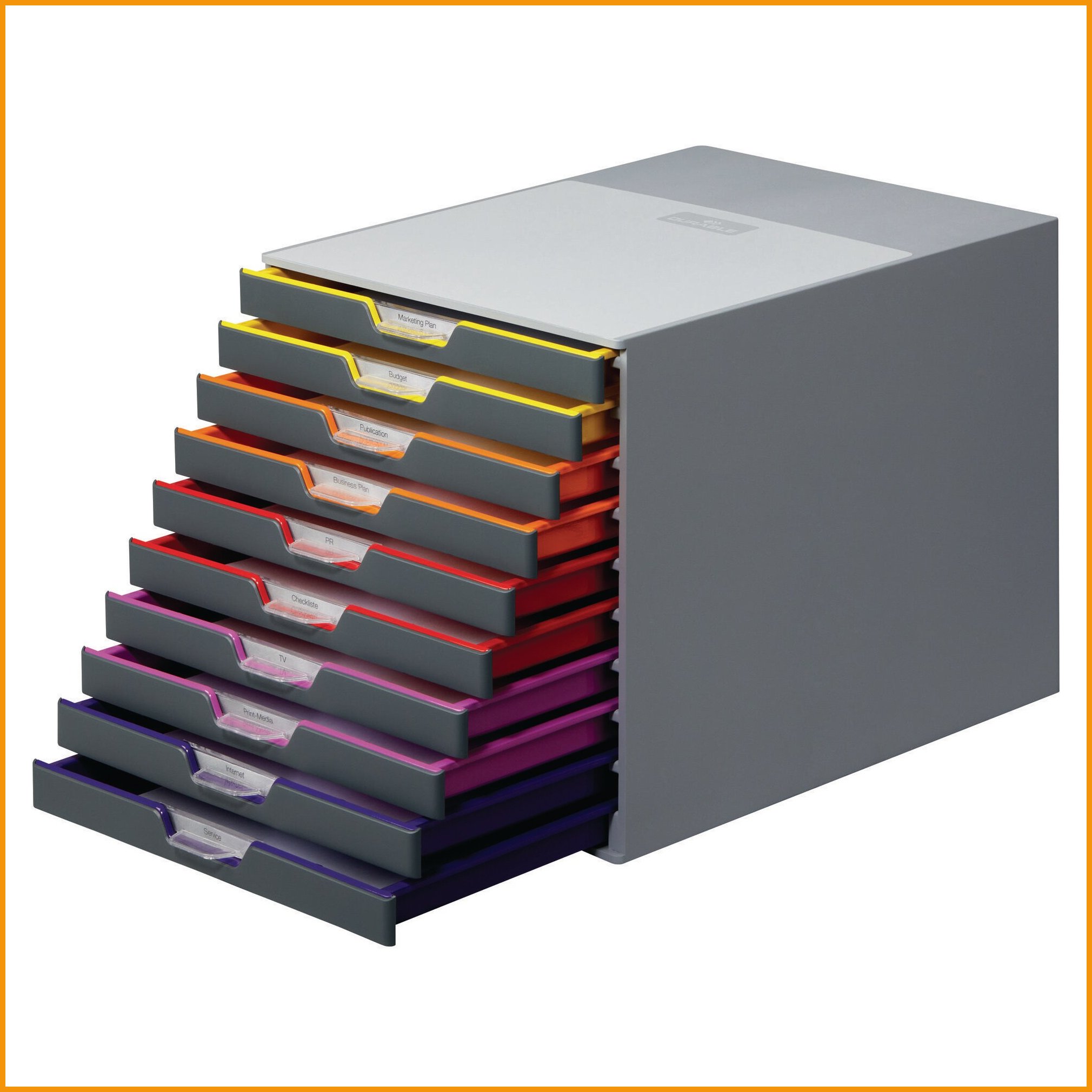Vetolaatikosto Durable 7610 Variocolor 10-osainen on käytännöllinen vetolaatikosto, joka mahdollistaa asiakirjojen ja pientavaroiden järjestelmällisen säilyttämisen.