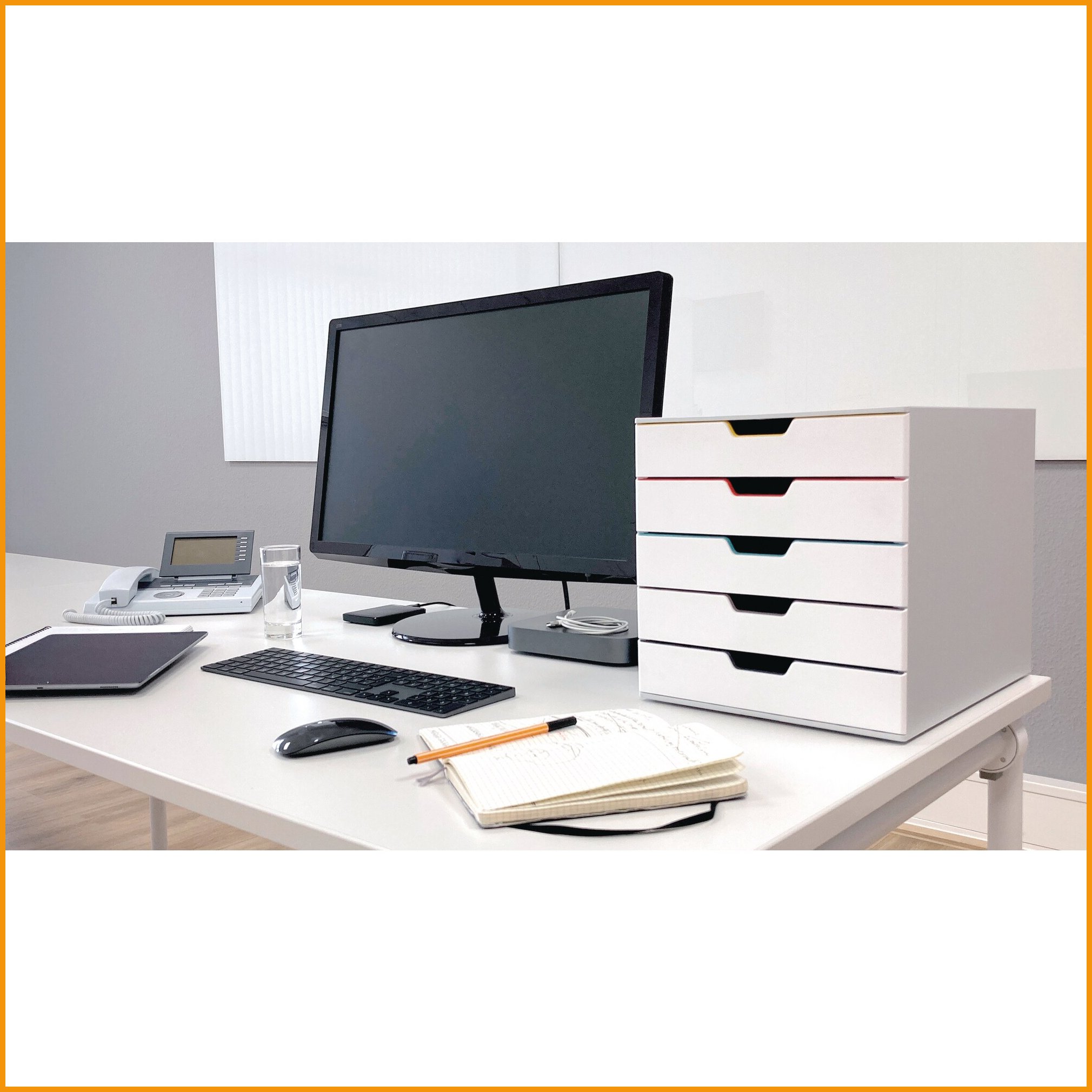 Käytännöllinen durable-vetolaatikosto auttaa asiakirjojen ja pientavaroiden järjestelmällisessä säilyttämisessä. eriväriset laatikot helpottavat asiakirjojen järjestämistä ja piristävät työpöydän ilmettä. a4-kokoisille asiakirjoille sopivat laatikot avautuvat pehmeän äänettömästi. pakkaus sisältää läpinäkyvät etikettipidikkeet ja etiketit. laatikostoja voidaan pinota useita päällekkäin.Vetolaatikosto Durable varicolor 5-osainen valkoinen/ monivärinen on mainio toimistotuote, jonka verkkokauppatilauksen toimitus perille kestää 1-2 päivää. Muistathan, että Toimitus on ilmainen kaikilla verkkokaupan ostoksilla, joiden hinta on yli 140 €. Meiltä voit tilata laskulla ja ilman rekisteröitymistä.