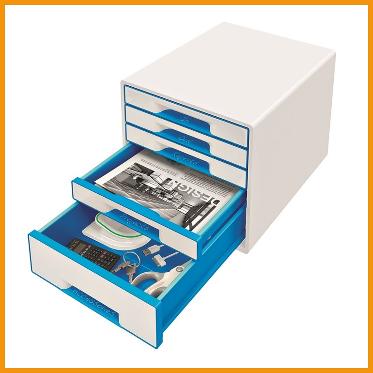 Vetolaatikosto Leitz WOW Cube 5-osainen valkoinen/sininen on laadukas toimistotarvike, jonka toimituksen kesto on verkkokaupasta tilattuna 1-2 päivää. Tiedäthän, että Toimitus on ilmainen kaikilla verkkokaupan ostoksilla, joiden hinta on yli 140 €. Meiltä voit tilata laskulla ja ilman rekisteröitymistä.