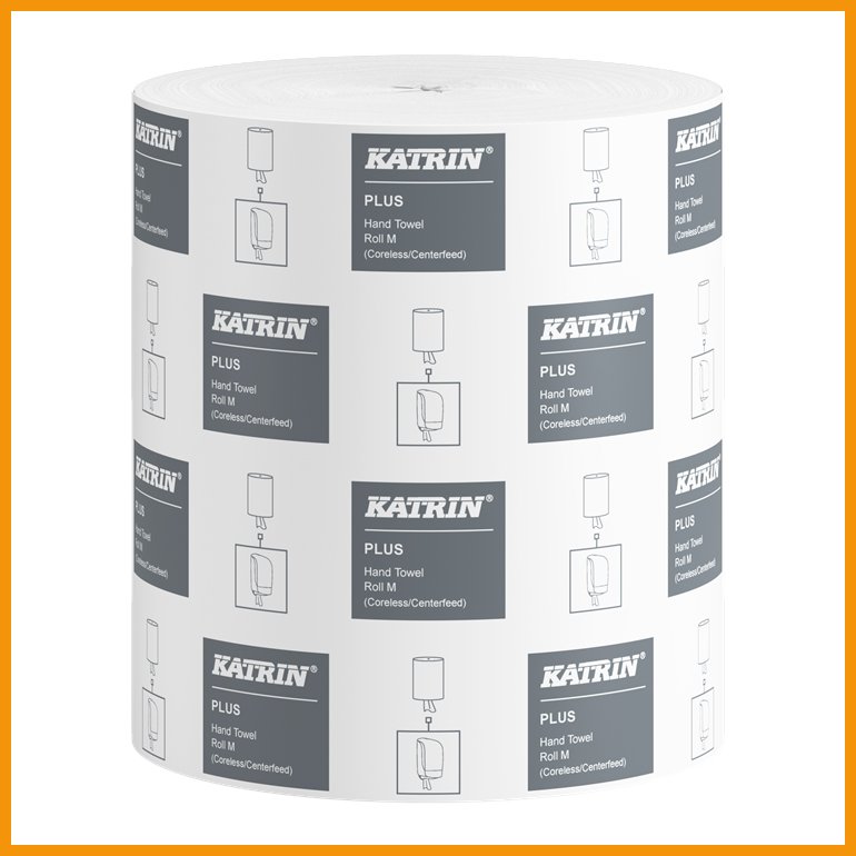 Katrin Plus M on keskeltä purkautuva ja hylsytön, niin käsipaperiksi kuin talous- ja teollisuuspyyhintäänkin soveltuva vetopyyherulla. Plus-laatuinen paperi on vahvaa ja kuivaa tehokkaasti ja varmasti. Paperi soveltuu lyhytaikaiseen kosketukseen elintarvikkeiden kanssa, kuten elintarvikekäytössä olevien tasojen pyyhintään.PEFC-sertifioidusta kuidusta valmistetulla paperilla on pohjoismainen Joutsenmerkki.