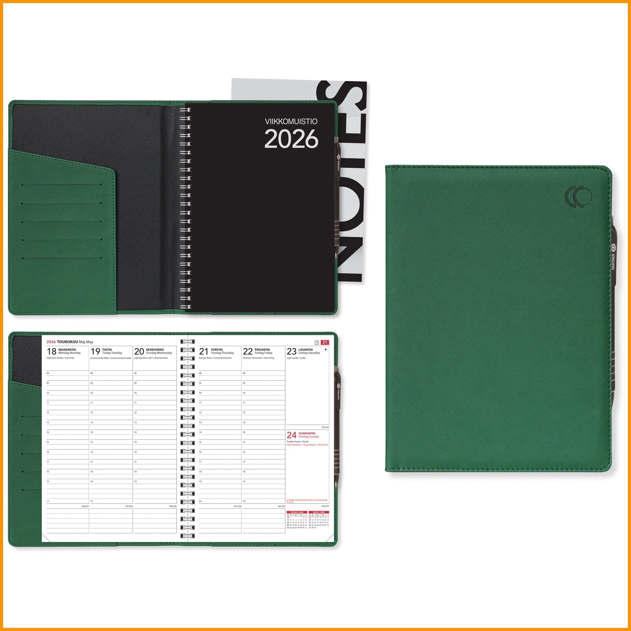 Viikkomuistio 2026 Cc 2236 plus viikkokalenteri vihreä 148 × 210mm hinta 23,50€