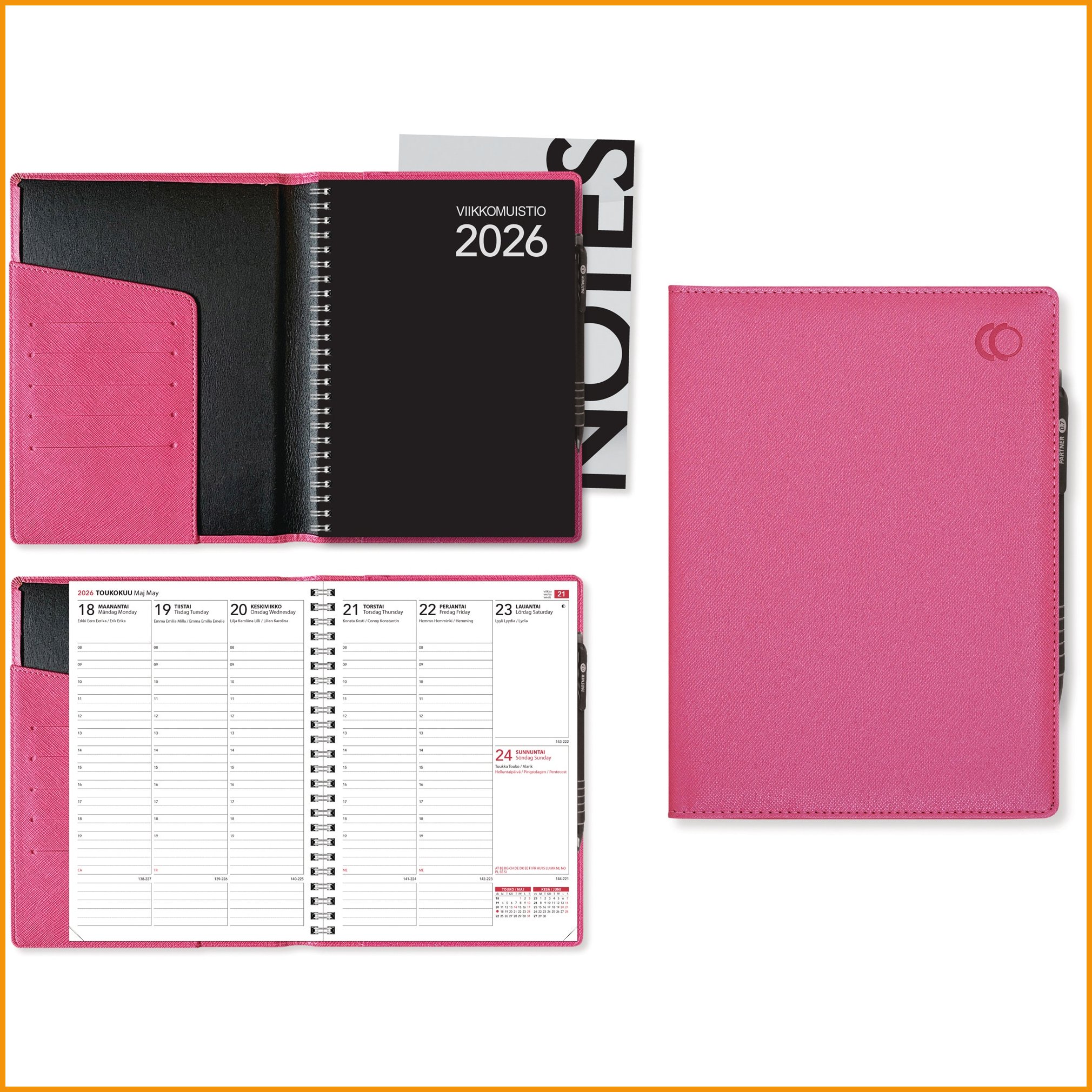 Viikkomuistio 2026 Cc 2266 plus viikkokalenteri fuksia 148 × 210mm hinta 23,50€