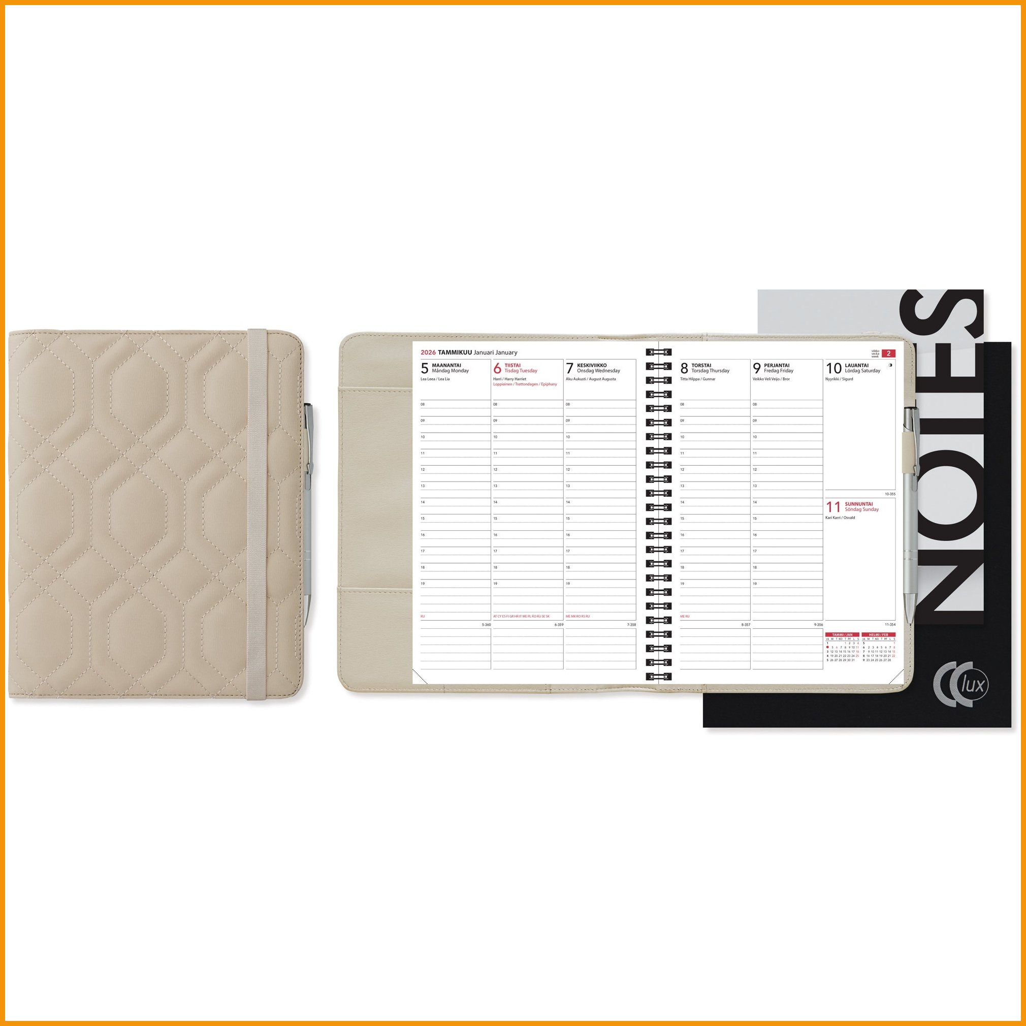 Viikkomuistio 2026 Cc 2616 lux viikkokalenteri beige 148 × 210mm hinta 67,42€