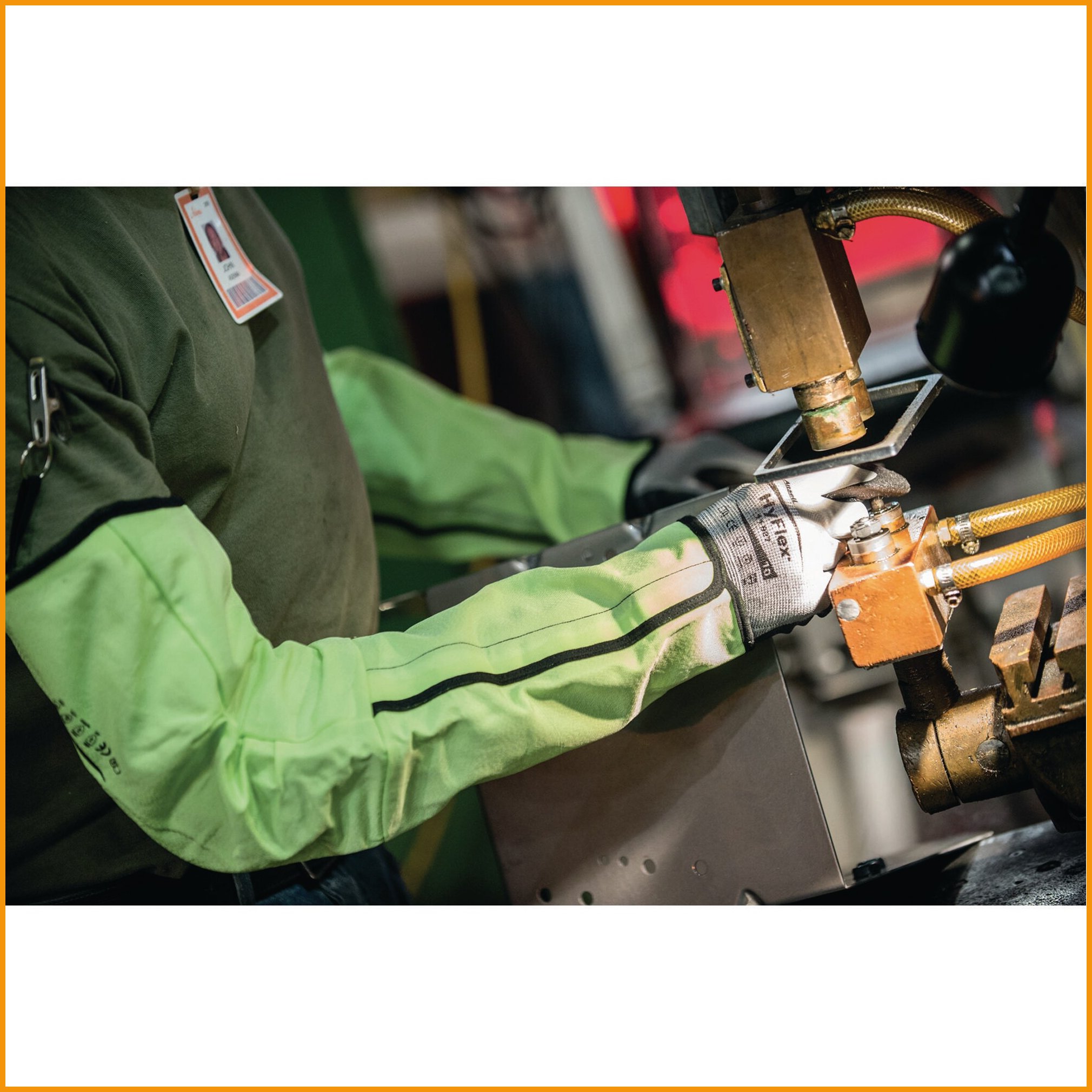 Viiltosuojahiha Hyflex 11-200 on 47,5cm pitkä anatomisesti muotoiltu hikoilua vähentävä viiltosuojahiha. Viiltosuojahihan käyttö suojaa käsivarttasi lämmöltä ja teräviltä esineiltä.