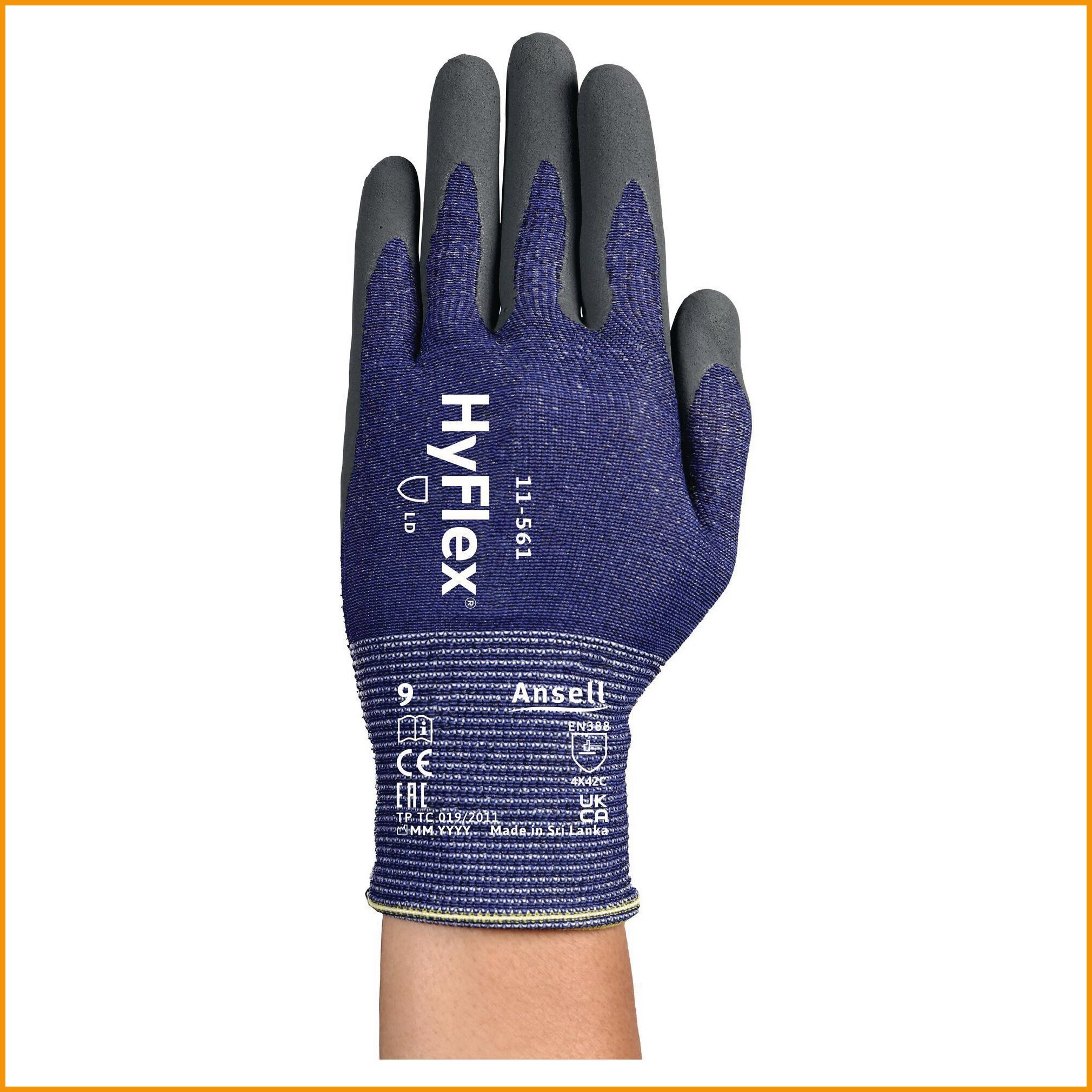 Ansell hyflex® 11-561 on paras valinta, kun tarvitaan korkeaa viiltosuojaa ja kätevyyttä kuivista kevyesti öljyisiin olosuhteisiin. ohut pinnoite käyttää fortix-teknologiaa, joka tarjoaa erityisen kestävyyden lisäksi istuvuuden, joka on mukavampi ja hengittävämpi. intercept™-lanka tarjoaa korkean viiltosuojauksen samalla kätevyyttä ja mukavuutta. kämmenen pinnoitemuotoilu parantaa otepitoa, pidentää käsineen ikää hankaavissa olosuhteissa ja antaa kämmenselän hengittää.vahvistettu peukalon tyvi lisää tuottavuutta tärkeälle käsikosketuksen alueelle ja pidentää käsineen käyttöaikaa. korkeat viilto- (iso c) ja repäisykestävyydet. käsine on silikoniton, mikä estää silikoniepäpuhtauksien siirtymisen metalliosiin ennen maalausta. käsineet on dermatologisesti testattu ja niissä ei ole haitallisia aineita.sertifiointi: en iso 21420:2020 en 388:2016, 4x42c oeko-tex 100 elintarvikehyväksyntä, täyttää ey asetuksen 2023/2006 vaatimukset