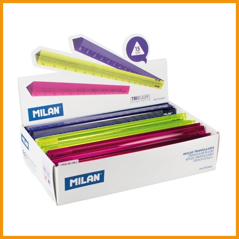 Milan Acid on halkaisijaltaan kolmiomainen ja värikkäästä, läpikuultavasta muovista valmistettu viivoitin.Pituus: 15 cm