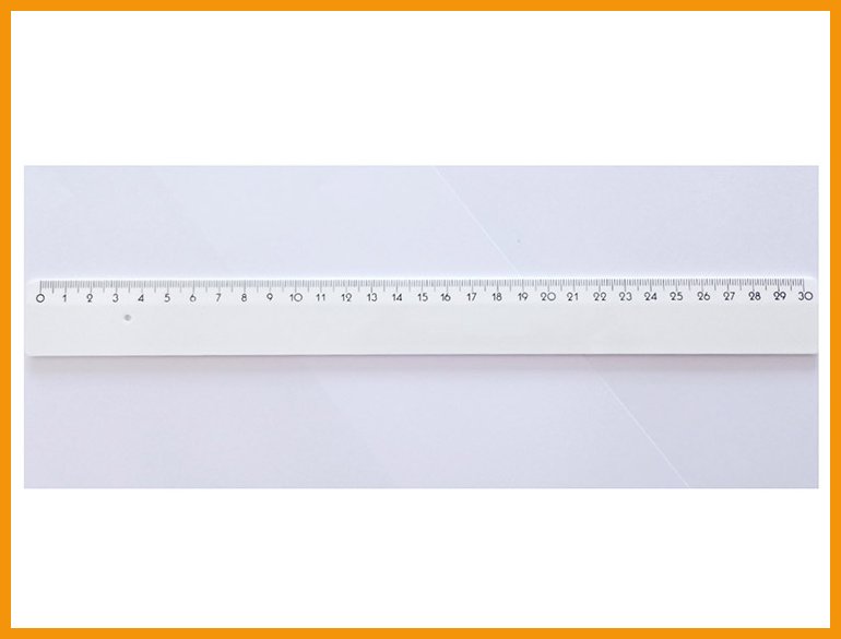 Valkoisesta muovista valmistetussa viivoittimessa on metrinen asteikko millimetrin tarkkuudella ja tussireuna.Pituus: 30 cm.
