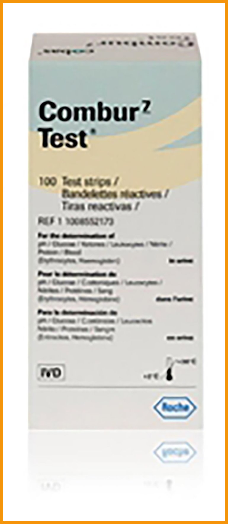 Combur Test 7 -virtsatestiliuskat voidaan lukea joko visuaalisesti tai Urilux/Urisys1100 -virtsanlukulaitteilla. Testiliuskalla voidaan testata seuraavat aineet: proteiini (alb), glukoosi, veri (erytrosyytti), pH, nitriitti (bakt), leukosyytti ja ketoni.Valmistaja: Roche, Saksa