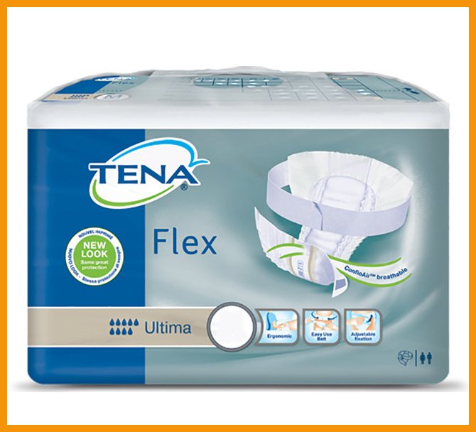 TENA ProSkin Flex Ultima -vyösuoja on äärimmäisen imukykyinen suoja erittäin vaikeaan Inkontinenssiin. Tuote mukautuu hyvin erilaisille vartalotyypeille, pysyy paikoillaan vyöhön kiinnitettynä ja on helppo vaihtaa. Vaipan vaihtaminen on helppoa kaikenlaisissa asennoissa, seisten tai makuulla, edestä tai takaa. Nopeasti nesteen imevä ja välittömästi hajut neutraloiva suoja pitää ihon kuivana pitkään päivin ja öin.Kolmitehoinen TENA-suoja pitää ihon pinnan kuivan tuntuisena, on hellävarainen iholle ja vähentää reunavuotoja. Dermatologisesti testatut housut ovat Skin Health Alliancen hyväksymät.