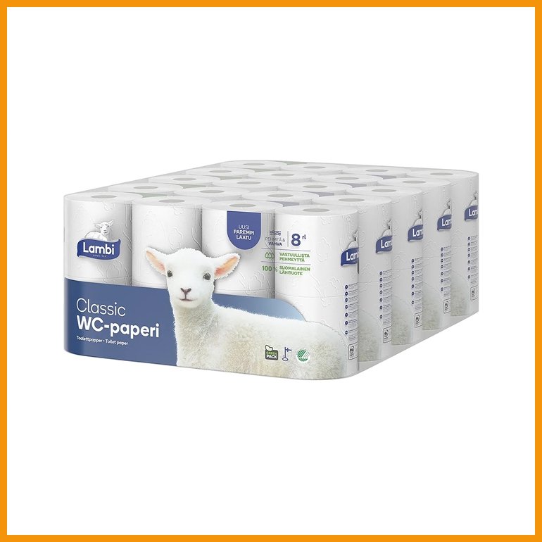 Lambi on Suomen Mäntässä kotimaisista raaka-aineista valmistettu perinteinen, pehmeä ja vahva wc-paperi. Korkealaatuinen paperi soveltuu erityisesti korkean profiilin julkisiin tiloihin.PEFC-sertifioidusta puusta valmistetulla tuottella on sekä pohjoismainen Joutsenmerkki että kotimainen Avainlippu-tunnus. Muovipakkaus on valmistettu vähintään 50-prosenttisesti kierrätysmuovista.