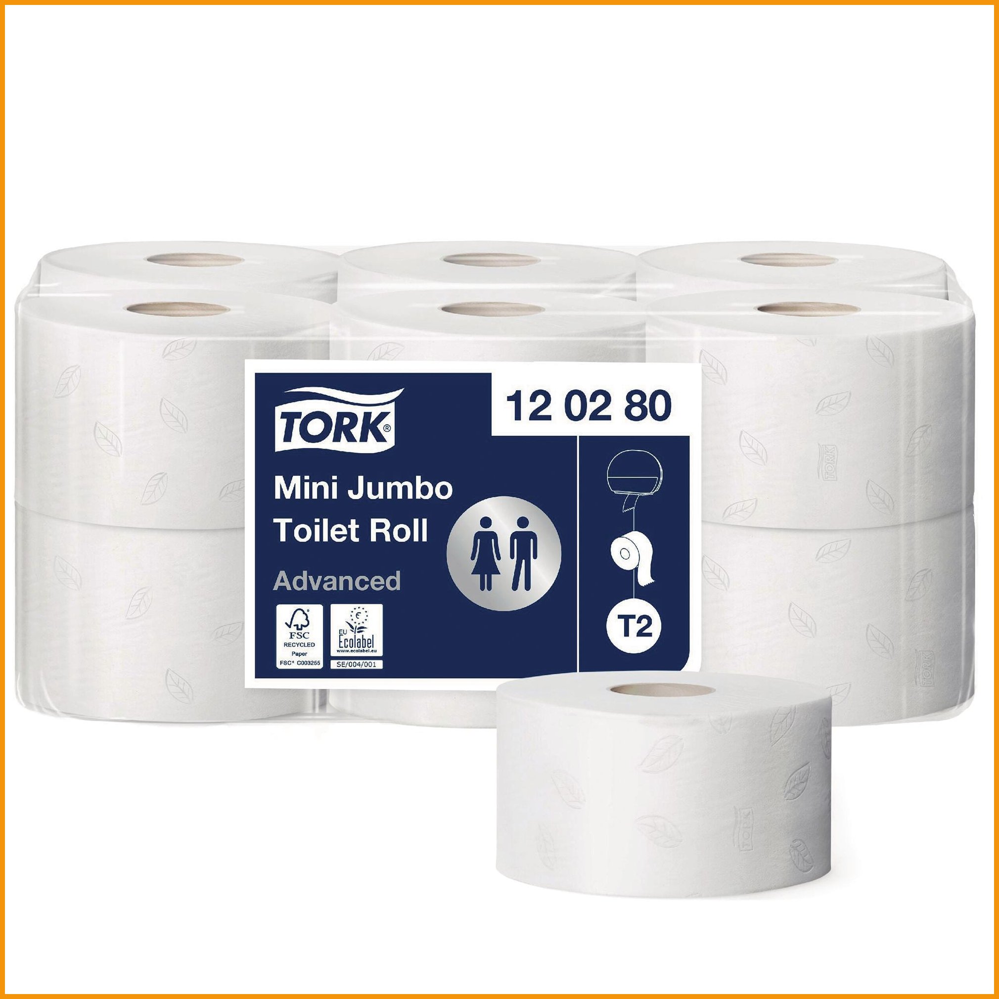Wc-paperi Tork® 120280 t2 mini jumbo 2-krs 12kpl tuotetiedot