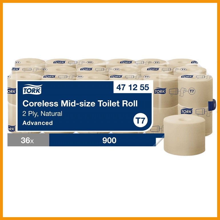 Tork Natural Mid-size on hylsytön ja Advanced-laatuinen wc-paperi, jonka suuri kapasiteetti vastaa useita perinteisiä wc-paperirullia. Luonnollisen ruskea ja miellyttävästi kohokuvioitu Tork T7 -annostelijaan sopiva paperi soveltuu sekä vähäisten että kohtalaisten käyttäjämäärien wc-tiloihin.FSC-sertifioidusta kuidusta valmistetulla paperilla on EU Ecolabel -ympäristösertifikaatti.