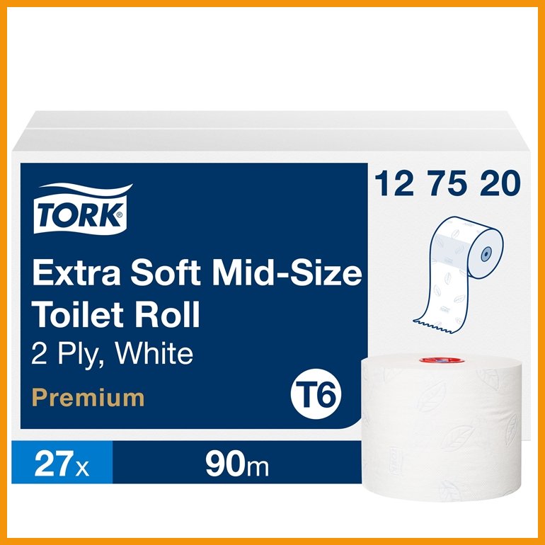 Tork Soft Mid-size on Tork Twin T6 -annostelijaan sopiva Premium-laatuinen wc-paperi. miellyttävästi kohokuvioitu ja erittäin pehmeä paperi soveltuu sekä vähäisten että kohtalaisten käyttäjämäärien ja laatutietoisten käyttäjien wc-tiloihin.FSC-sertifioidusta kuidusta valmistetulla paperilla on EU Ecolabel -ympäristösertifikaatti. Myös muovipakkaus on valmistettu vähintään 30-prosenttisesti kierrätysmateriaalista.