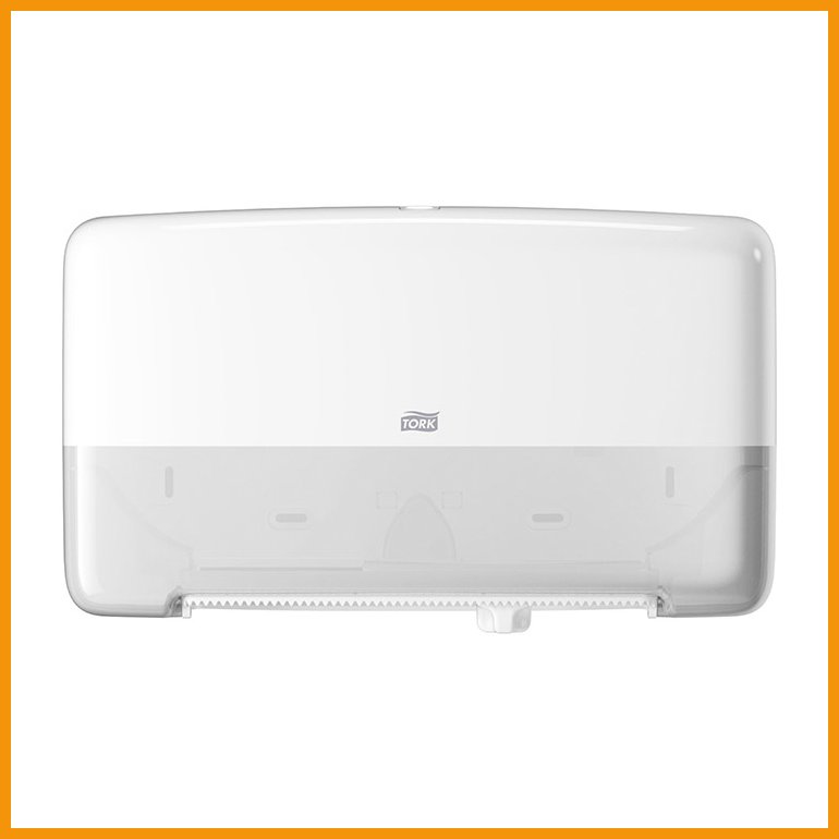Tork Twin Mini Jumbo T2 on Elevation-sarjan annostelija kahdelle Tork Mini Jumbo -wc-paperirullalle. Osittain läpinäkyvä ja helposti täytettävä annostelija sopii rullien suuren kapasiteetin ansiosta suurten käyttäjämäärien saniteettitiloihin.Annostelijassa on kätevä rullapidike, joka auttaa käyttämään rullat loppuun asti sekä rullien turhaa pyörimistä estävä ja näin paperin kulutusta vähentävä rullajarru.